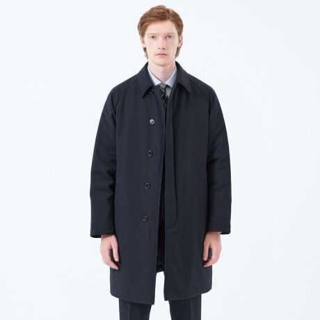 英国にルーツのあるバルマカーン(ステンカラー)コート。シンプルなデザインながら、ゆったりとしたシルエットや一枚袖のラグランスリーブのフォルムなど、リラックスしたスタイルに合わせやすいトレンド感のある雰囲気に仕立てています。一見すると重量感がありそうですが、軽量中綿(Heavenly Light Cloud)を使用し、しっかりと防寒性と保温性に優れていながらも、非常に軽量なコートに仕上がっています。