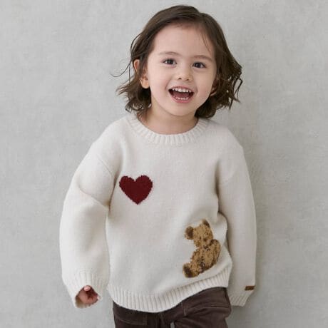 ハートとテディベアをデザインした愛らしい印象のプルオーバーです。