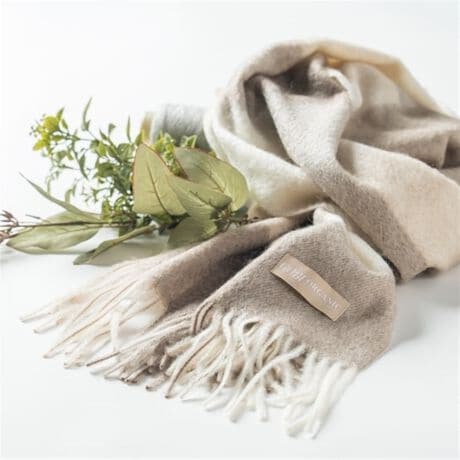 こちらはモンゴルにしか生息しない4種類のカシミヤ山羊の天然の色を活かした染色を施していないオーガニックカシミヤのマフラーです。