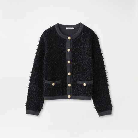 ツィードの華やかさとニットの着やすさを兼ね備えた、大人のための上質カーディガンです。