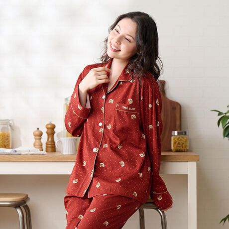 とろみのある艶やかな綿レーヨンサテンで仕立てた、着心地抜群の大人パジャマ。 「PAUL & JOE」ならではのアイコン猫“ヌネット”とドット柄がちりばめられ、遊び心あふれるデザインに。 カラーは秋冬に映えるシックな赤と紺。リラックスタイムも、ぐっと華やかにしてくれる贅沢な一着です。