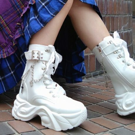 サテンリボンをシューレースに使ったハイカットデザインの厚底スニーカー。 取外し可能のチャームは揺れるハート型がキュート、お手持ちのアクセサリーを付けたりその日の気分でアレンジが楽しめます。 クッション性の良いソールはもちろん、インソールはカップソール仕様なので安定したフィット感が期待出来ます。 *チャームは引っかけなどによって破損する恐れがありますのでお気を付け下さい。[型番:4450084]