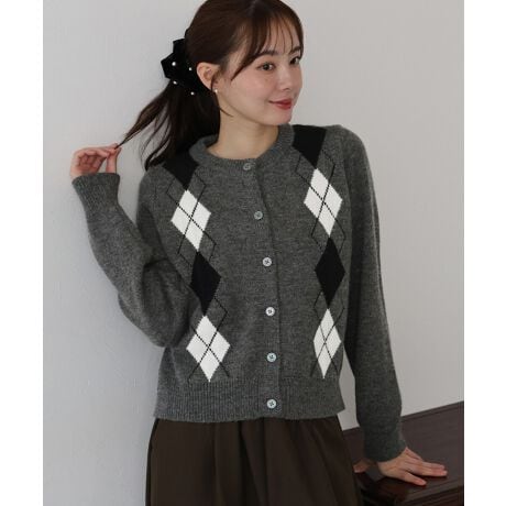 シーズンライクなアーガイル柄がクラシカルな印象のニットカーディガン