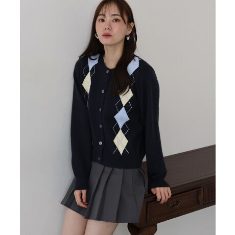 アーガイル柄が秋冬のムードを高めるニットカーディガン。