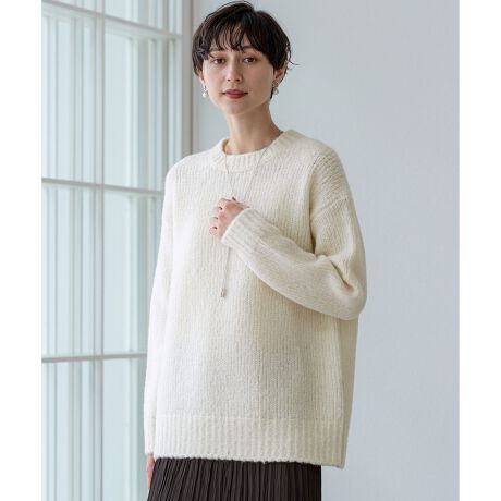 イタリア染めならではの鮮やかな発色と可愛らしい素材感が目を引くニットです。太めのリブ襟がポイントのクルーネックデザインで、ゆったりとしたシルエットとヒップが隠れる丈感で、真冬でも暖かくリラックスして着られます。着るだけでコーディネートの主役になり、シンプルなボトムスと合わせるだけでおしゃれなスタイルが完成します。カラーは、着回し力のあるホワイト(#001)、鮮やかな発色が目を引くマゼンタ(#014)、爽やかなスカイブルー(#072)の3色展開です。