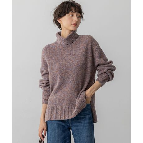 ふわふわとした素材感を最大限に生かした、ゆったりシルエットのタートルネックニットです。首元はオフタートル気味に優しくフィットし、締め付け感がなく快適な着心地を叶えます。袖口には程よいボリューム感を持たせ、女性らしい柔らかな印象をプラスしました。また、裾には前後差をつけた軽やかなサイドスリットを施し、動きのあるデザインに。絶妙なバランスで、大人の女性にふさわしい優しく上品な雰囲気を演出します。ウール特有のチクチク感が苦手な方にもぜひ一度お試しいただきたい、極上の肌触りと軽さを実現したストレスフリーな一枚です。細身のパンツと合わせてすっきりと、ワイドパンツやフレアスカートと合わせてリラックス感のある着こなしもおすすめです。カラーは、顔回りを華やかに彩るオレンジマルチ(#520)、上品で洗練された雰囲気のブラウンマルチ(#535)、知的さを醸すネイビーマルチ(#575)の3色展開です。