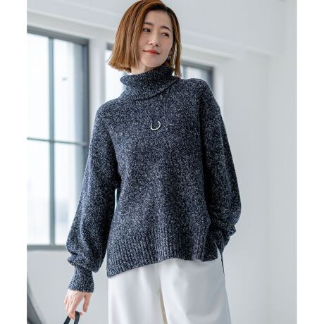 ふわふわとした素材感を最大限に生かした、ゆったりシルエットのタートルネックニットです。首元はオフタートル気味に優しくフィットし、締め付け感がなく快適な着心地を叶えます。袖口には程よいボリューム感を持たせ、女性らしい柔らかな印象をプラスしました。また、裾には前後差をつけた軽やかなサイドスリットを施し、動きのあるデザインに。絶妙なバランスで、大人の女性にふさわしい優しく上品な雰囲気を演出します。ウール特有のチクチク感が苦手な方にもぜひ一度お試しいただきたい、極上の肌触りと軽さを実現したストレスフリーな一枚です。細身のパンツと合わせてすっきりと、ワイドパンツやフレアスカートと合わせてリラックス感のある着こなしもおすすめです。カラーは、顔回りを華やかに彩るオレンジマルチ(#520)、上品で洗練された雰囲気のブラウンマルチ(#535)、知的さを醸すネイビーマルチ(#575)の3色展開です。