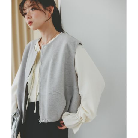ふんわりと丸みのあるバルーンシルエットが特徴のメルトンベスト。