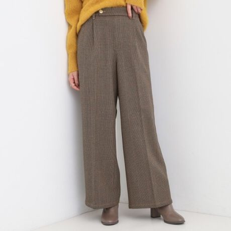 腰回りはすっきりとしたシルエットで、楽に穿ける暖かなワイドパンツ。