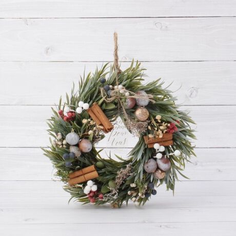 ボリュームたっぷりのクリスマスリース。きれいなボックス入りなのでギフトにもおすすめです。