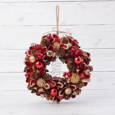 ボリュームたっぷりのクリスマスリース。きれいなボックス入りなのでギフトにもおすすめです。