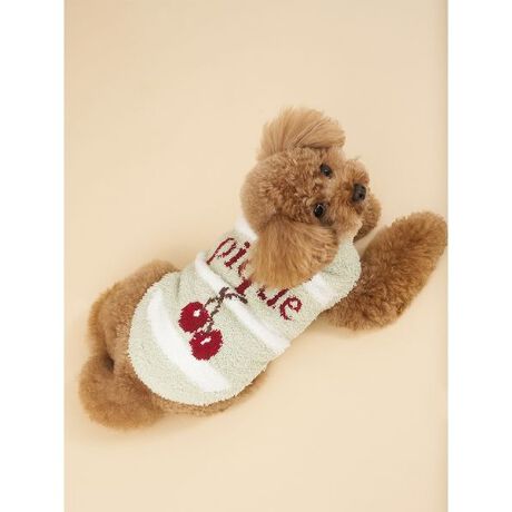 ボーダー柄に大人っぽい色合いのチェリーをあしらった、’ベビモコ’素材のもっちりとしたニットウェアです。秋らしいカラーリングに、チェリーとロゴのジャガードが映えるデザイン。色はブルーとグリーンの2色をご用意しました。同時期に展開するチェリー柄のUNISEXルームウェアと連動したアイテムなので、オーナー様とのリンク・コーディネートも可能。男性のオーナー様にもおすすめしたいアイテムです。