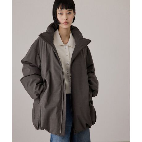 素材感を活かしミニマルなデザインを採用したミドル丈のダウンコート。