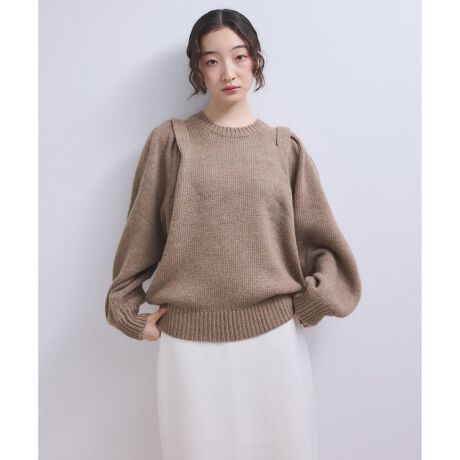 肩先と袖山の大胆なタックがポイントのニットプルオーバー。