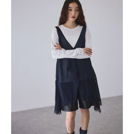 シアー感とアイラッシュレースが映えるジレは、インナーを合わせてワンピース風にも着用OK。