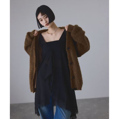シアー感とアイラッシュレースが映えるジレは、インナーを合わせてワンピース風にも着用OK。