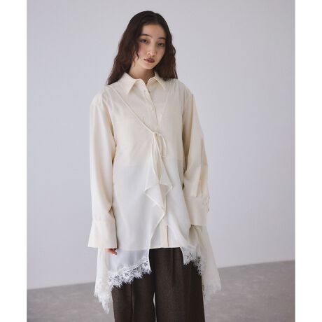 裾のアイラッシュレースが繊細に揺れる、シアー素材のレイヤードジレ。