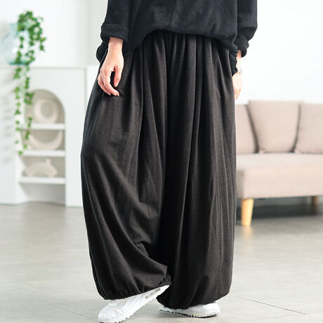 寒い季節も快適に、おしゃれを楽しめる裏起毛サーカスパンツ。肌に触れる裏面全体に、まるで毛布のようなふわふわの裏起毛素材を使用。ヒヤッとせず、暖かさに包み込まれるような心地よさは、一度穿いたら手放せません。バルーンシルエットがモード感を加速。裾にかけて丸みを帯びたバルーンシルエットが最大の魅力。気になる太ももやお尻周りをしっかりとカバーしつつ、こなれたカジュアル感を演出します。ウエストは総ゴム仕様で、リラックス感のある穿き心地。