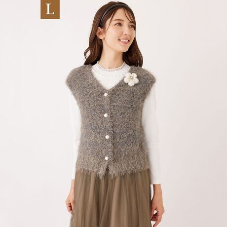 フェザーモール糸をミックスで編み立てた、前後2WAY仕様のコンパクトジレ。シンプルなシルエットに、3種の異素材が織りなす立体感と表情が加わり、コーディネートに奥行きを与えます。軽やかな着心地で、カジュアルにもエレガントにも着回せる、万能な一着です。