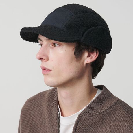 肌触りの良いボア素材をふんだんにあしらった耳当て付きキャップ。