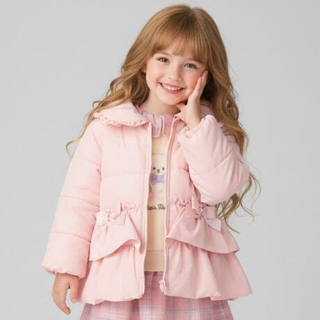 大胆なフリル使いに心惹かれる中綿入りのコートです。