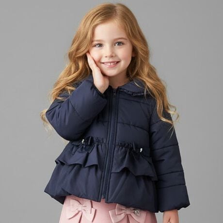 大胆なフリル使いに心惹かれる中綿入りのコートです。