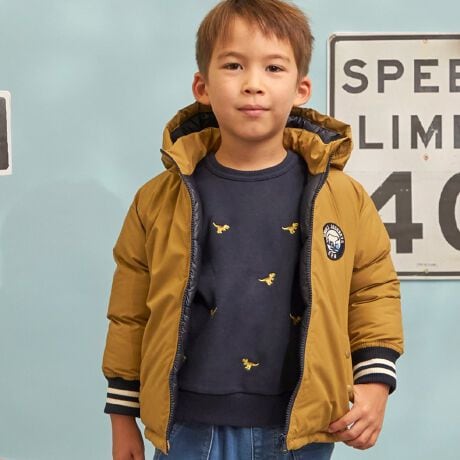 軽くて保温性に富んだ中わたのジャケットです。袖口はリブの仕様、裾もコードゴムで絞って調整可能、寒さから守ってくれます。天候やシーン、コーディネートに合わせて、フードも取り外しが出来ます。これからの寒い季節、デイリーに活躍しそう。
