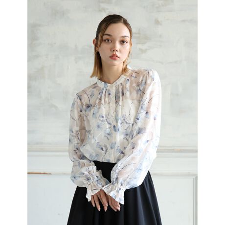 ジャガード織りで表現された花柄は、プリントとは一線を画す立体感と上品さがあり、高見えを叶えます。前開き仕様のため、トップスとしてだけでなく、軽やかな羽織りとしても活躍し、着回し力抜群アイテムです。ネックラインや袖口にあしらわれたフリル付きデザインが、顔周りを華やかに彩り、トレンド感のある装いに導きます。