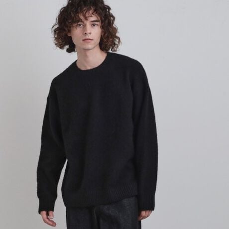 定番の丸首にベーシックなシルエットのニット。