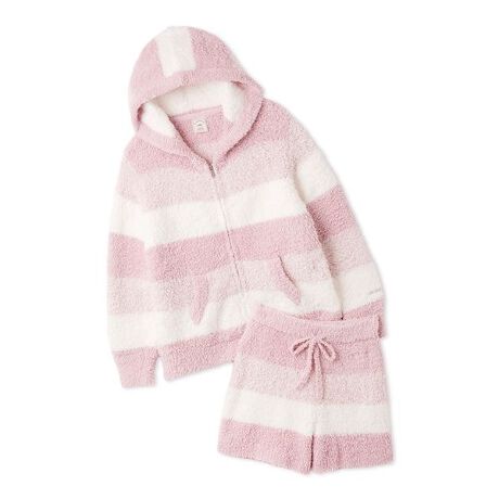 定番もこもこ素材‘ジェラート’を使用した、着こなしのアクセントになる3色ボーダーのシリーズです。ベーシックなジップパーカと、キュートな印象を生むショートパンツを組み合わせたオンライン限定のセットアップ。3色ボーダーのうち1色がメランジカラーになっているのがポイントで、ピンクとラベンダーはグラデーション調のカラーリング、ネイビーはメリハリのある配色デザインで仕上げました。上下ともワンポイントでロゴ刺繍入り。ギフトにもおすすめのアイテムです。