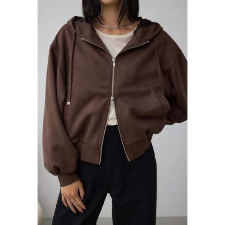 ■フェイクスエードフーディブルゾン■ポイントスエード素材で大人っぽさを演出するフーディーブルゾン。 ■ディテールカジュアルなブルゾン型に落とし込むことで、デイリー使いもしやすい1着。袖口、裾はリブにすることで、カジュアルさをプラス。ダブルジップ仕様で着こなしの幅を広げ、レイヤードにも対応。パフスリーブデザインで女性らしい印象に。少し短めのコンパクトな着丈設定です。■スタイリングバルーンスカートやワンピースと合わせてフェミニンミックスコーディネート。デニムやカーゴパンツと合わせたラフなスタイリングはもちろん、スラックスと合わせれば大人カジュアルに格上げ。■生地生地表面に微起毛をかけスエード調に仕上げたカットソー素材。なめらかなタッチと落ち着いたマットでビンテージ感のある表情が特徴です。シワになりにくくソフトな着心地もポイントです。透け感:なし裏 地:なし伸縮性:あり光沢感:なし[注意事項]※画像の商品はサンプルです。実際の商品と仕様、加工が若干異なる場合があります。※画像の商品は光の照射や角度、お使いのモニター環境により、実物と色味が異なる場合がございます。※着用、お取り扱いの際は、アテンションタグをご確認ください。