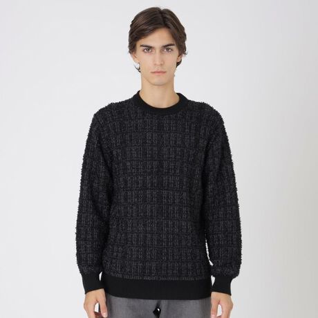 ツィードを思わせる表面感が魅力の、ツィードテイストニット。意匠糸を用いた表情豊かな編み地が、華やかで高級感のある印象を作り出しています。衿・袖口・裾にほんのりとラメ糸をあしらい、上品なきらめきをプラス。シンプルなデザインながら存在感のある編地でコーディネートの主役になる一着です。