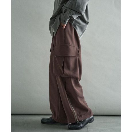 ワイドなシルエットにカーゴポケットを配置し、程よいボリューム感を演出。裾にはマチ付きのファスナースリットを備え、動きのあるシルエットを楽しめます。