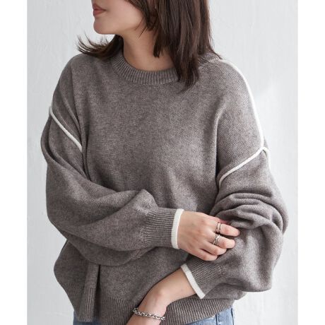 配色ラインがアクセントになったラウンドネックプルオーバー。