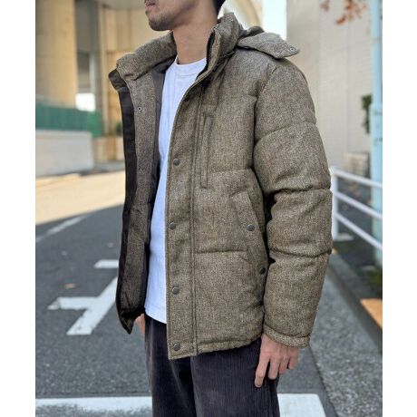 表情感のあるツイード見え素材使用の中綿ブルゾン。