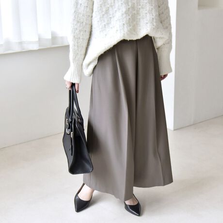 フロントタックが立体感を生み、スカートのように動くたびに揺れるラインが女性らしいムードに。