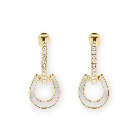 白蝶貝で表現した馬蹄モチーフが上品に揺れるエレガントなフープイヤリング。