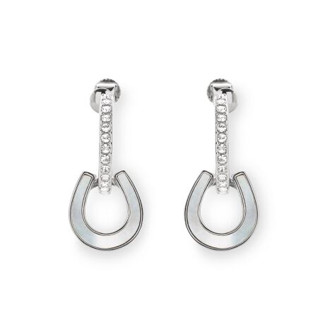 白蝶貝で表現した馬蹄モチーフが上品に揺れるエレガントなフープイヤリング。