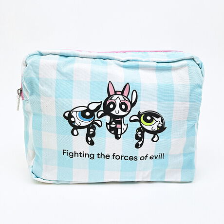 パワーパフ ガールズのギンガムチェックポーチです。大きめのポーチなのでメイク用品やガジェット類を入れるのはもちろん、トラベルポーチとして使用したりと使い勝手◎同シリーズのトートバッグとセットで持つと可愛さMAXです☆彡
