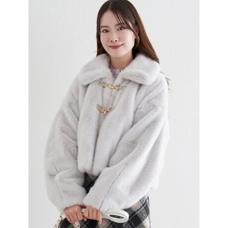 もこもこのファー素材が暖かい着心地を演出するダッフルジャケット。