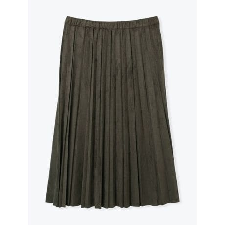 優雅に揺れるプリーツが上品見えするスエード調スカート。
