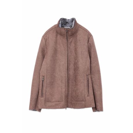 フェイクムートン素材を使用したスタンドジップブルゾン。リアルムートンのような上品な質感と、フェイクならではの軽やかな着心地を両立した別注ファブリックを採用しています。シンプルで洗練されたデザインに、程よくタイトなシルエットを組み合わせ、モードな印象に仕上げた一着。細身のパンツと合わせれば、シャープで都会的なスタイリングが完成します。