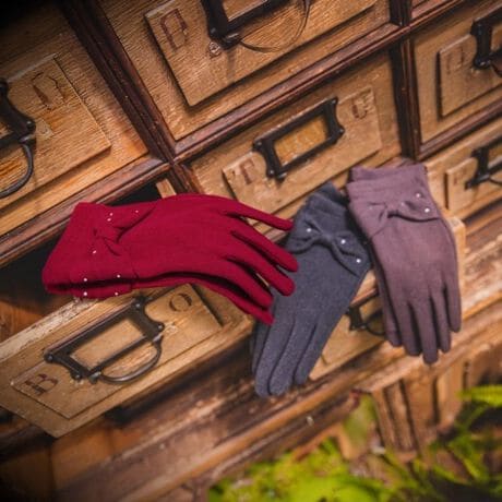 カフス部分のリボンモチーフがポイントのジャージーグローブ。