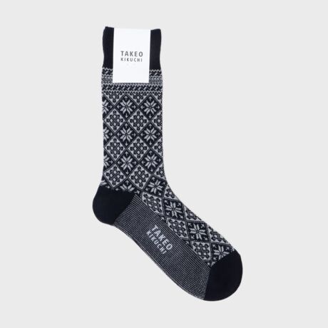 [型番:07004729]【デザインポイント】176Nのミドルゲージジャカード機で仕上げた中肉のカジュアルソックス。座っても素足の見えない、人気の丈。冬を感じる雪柄でギフトにもピッタリ。※照明の関係により、実際よりも色味が違って見える場合があります。また、パソコン・スマートフォンなどの環境により、若干製品と画像のカラーが異なる場合もございます。