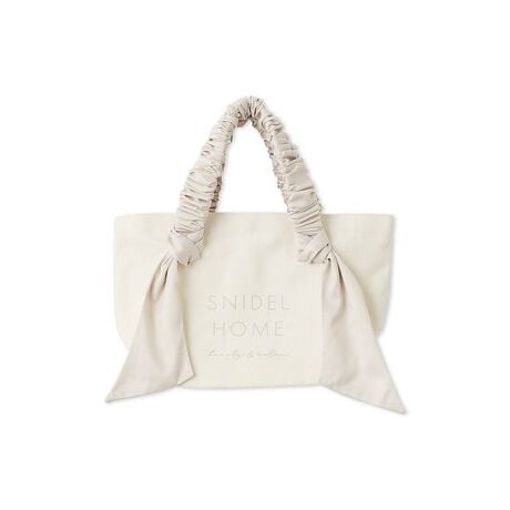 ギャザーを寄せた持ち手や大きなリボンで個性を出し、カジュアルな素材ながらデイリーに取り入れてもラフすぎない、女性らしさと品の良さが楽しめます。