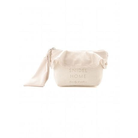 手触りなめらかなリボンとフリルを大胆にあしらった、オーガニックコットンのキャンバス製ポーチです。