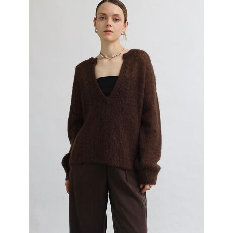 冬のレイヤードスタイル気分を底上げしてくれる、シャギーのニットトップス。深く開いたVネックが大人らしい抜け感と華奢さをプラスするのに加え、幅広いインナーとの重ね着をお楽しみいただけます。見た目以上の軽さでアウターとの両立も安心。落ち着きのあるナチュラルなカラーと鮮やかなレッドを差し色に加えたカラーバリエーションにも注目です。