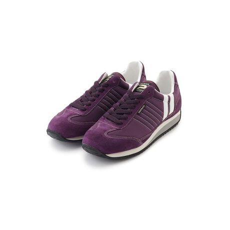 深みのあるパープルをナイロンとベロアでデザインした「MARATHON」。2本ラインをホワイトにすることで抜け感を演出し、軽やかに仕上げました。軽量ソールとクッション性が長時間の歩行をサポートし、快適な履き心地を叶えます。