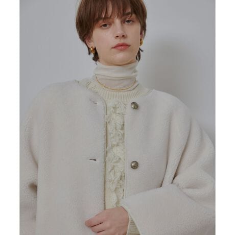 ふっくらとしたボアが身体を包み込んでくれる、フェイクムートンボアコートです。