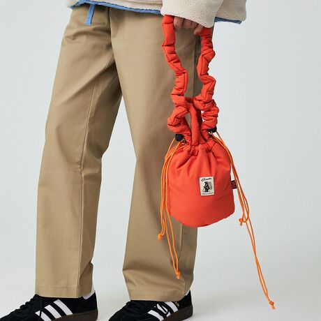 ころんとしたフォルムのシンプルな巾着型ショルダーバッグ。